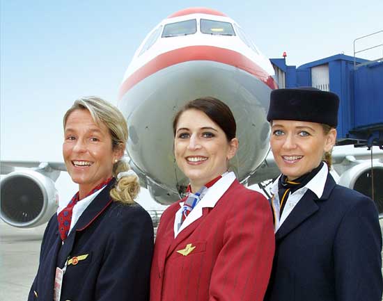 “Startplatz Düsseldorf: günstig in alle Welt. Die Flugbegleiterinnen von LTU, Air Berlin und Lufthansa (von links) warten schon”, so die Bildunterschrift von Wolfgang Ibel.