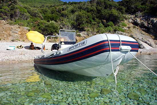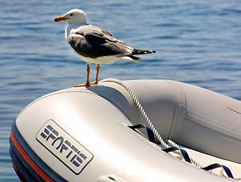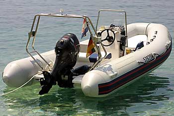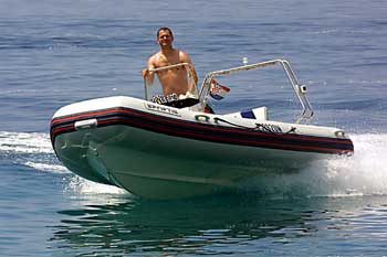 Hat (fast) alles was man braucht: ausgepägten GFK-Kiel, Hypalon-Schläuche, Steuerstand, Staufächer, Geräteträger mit Beleuchtung und eine